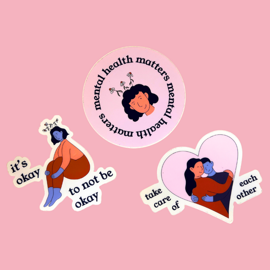 Mental Health Stickers | Inspirational Anxiety Depression Positive Wellness Pink Blue
