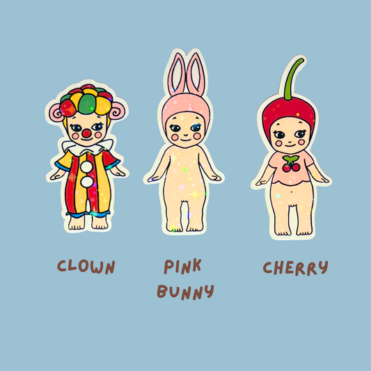 Angel Babies Holographic Stickers | Kawaii Frog Cat Cherry Clown Trinket