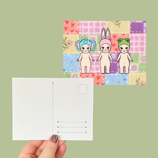 Pastel Quilt Angel Babies Postcard | Kawaii Cute Frog Bunny Elephant Trinket
