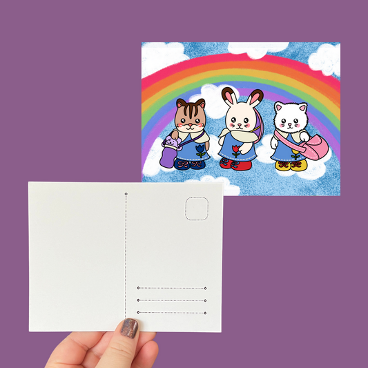 Bow Critters Postcard | Trinket Cute Kawaii Cat Families Rainbow Nostalgic 90's Y2K