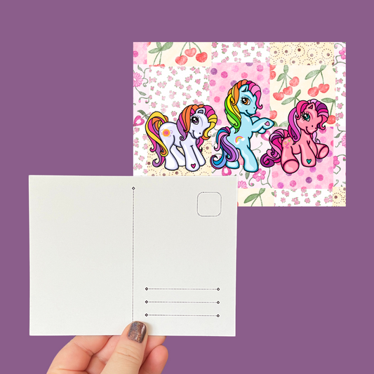 Pink Quilted Postcard with Pastel Toy Ponies | Retro Nostalgic 90's Girly Y2K Diva