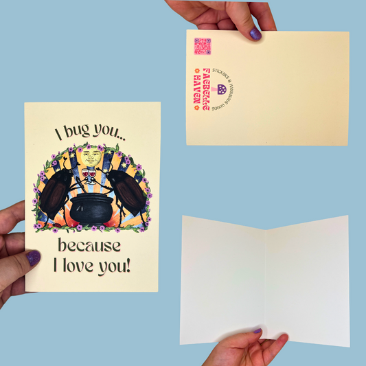 Love Bugs Greeting Card | Anniversary Valentines Day Birthday Fairycore Cottagecore Whimsical Storybook Vintage Fairytale Celebration